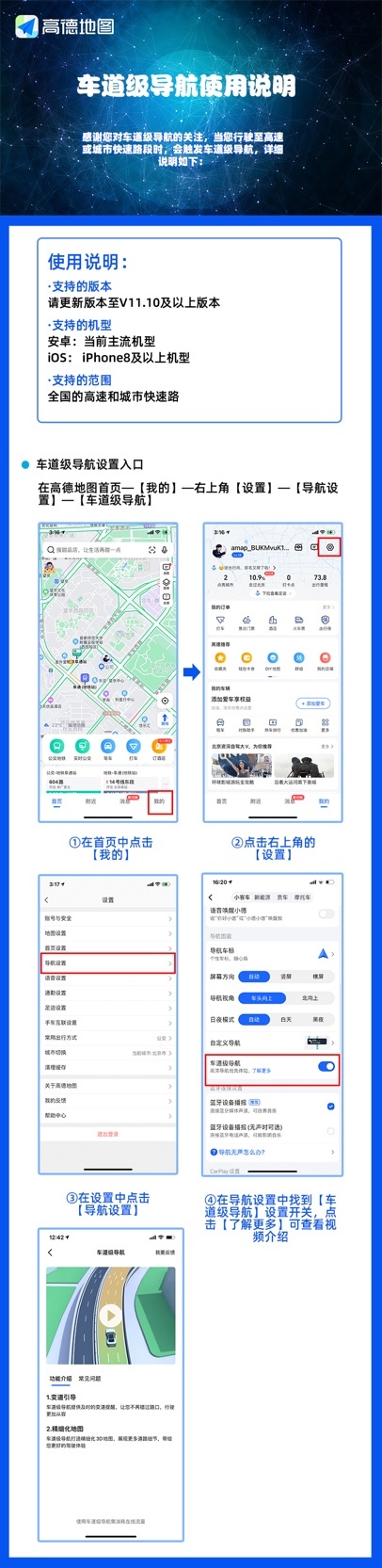 就用户而言,开启此项服务极为简便。其一,要把手机当中的高德地图 APP 升级成最新版本。其二,将 APP 打开之后,轻触首页右下角的“我的”。其三,再去点击右上角的“设置”。其四,得以进入“导航设置”页面。其五,往下滑动便能够瞧见“车道级导航”的选项。其六,确保该选项处于开启状态便可。
