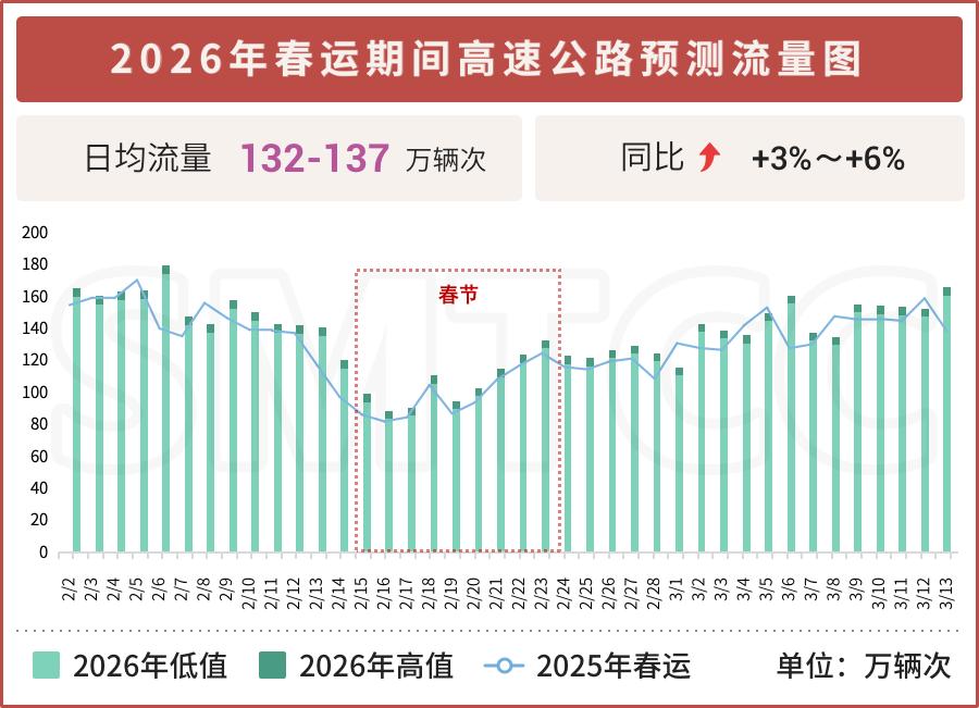 2026年,春运期间,高速公路流量显著呈现上升趋势,依据预测,高速公路日均流量会达到132万至137万辆次,和去年同一时期相比较,增幅处于3%到6%之间,这表明,不管是出城,还是返城,车主都将遭遇比以往年份更密集的车流。
