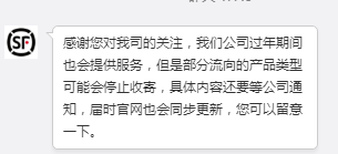 顺丰邮政等春节不打烊
