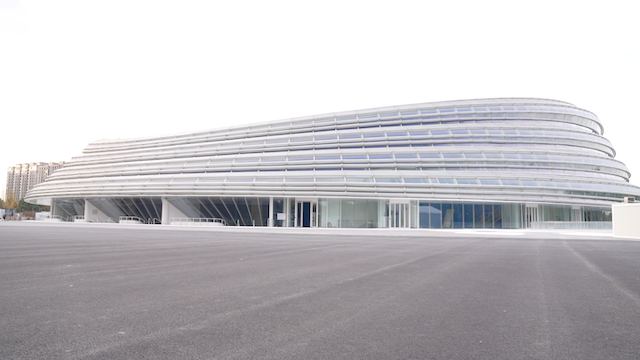 北京冬奥会唯一新建的比赛场馆是国家速滑馆“冰丝带”,它的外幕墙构建于3360块玻璃之上,且乎任何两块都不完全相同,环绕场馆的22条“冰丝带”呈盘旋错落之态,此形态象征着2022年举办的北京冬奥会,从遥远之处观望,这些“冰丝带”恰似速滑运动员的冰刀于冰面留下的轨迹,蕴含满满的动感与韵律。