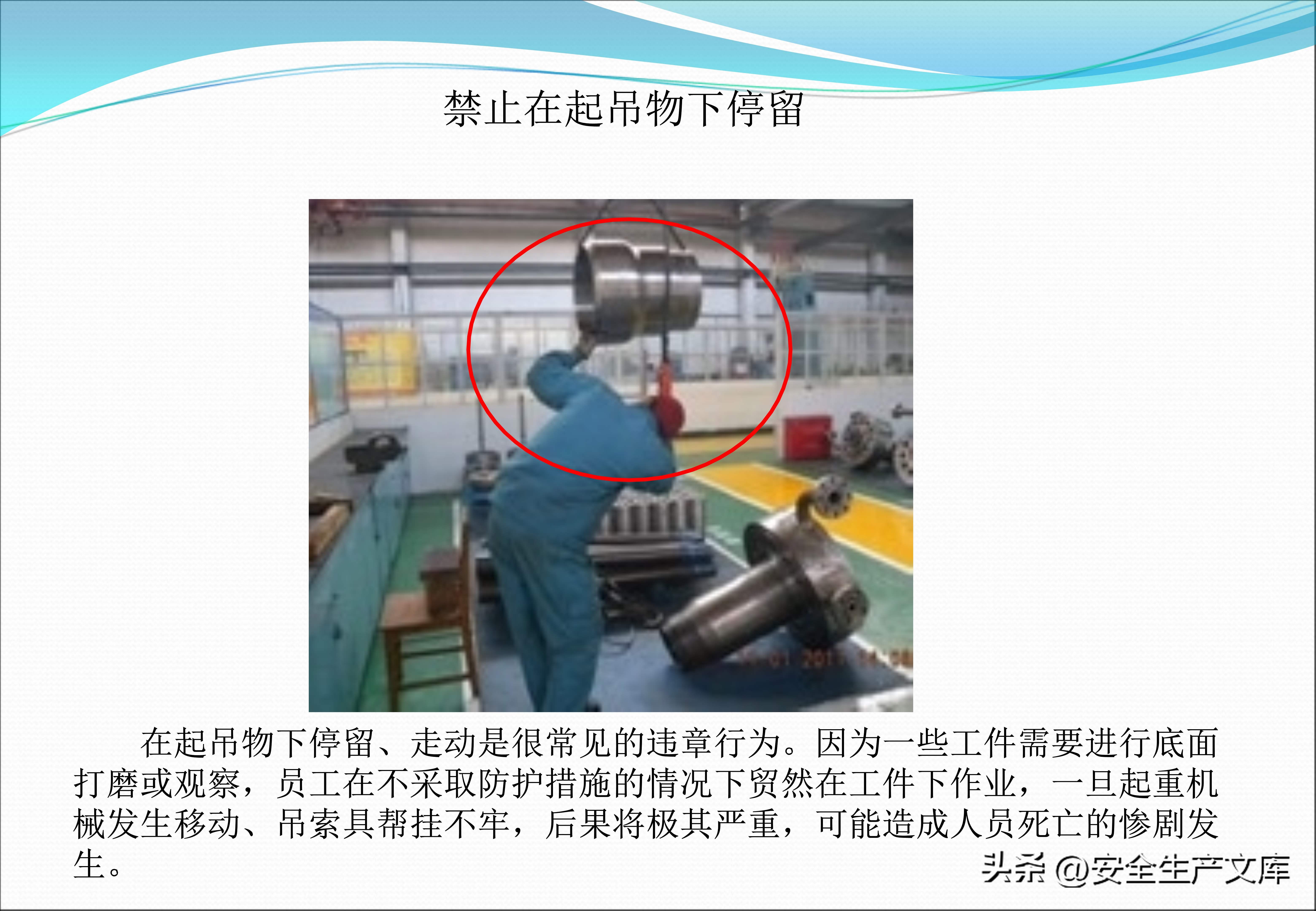 高空抛物这种行为与起吊作业违规行为一样令人触目惊心,在图例里,有一名工人,出于方便的目的,把扳手直接从脚手架上扔下去,险些砸中下方路过的同事,在起重作业当中,歪拉斜吊致使吊物摆动,撞倒了旁边的物料架。课件不断反复强调,高处作业一定要系挂安全带,起重作业严禁在起吊物下停留!这些规定可都是用生命换来的教训啊!