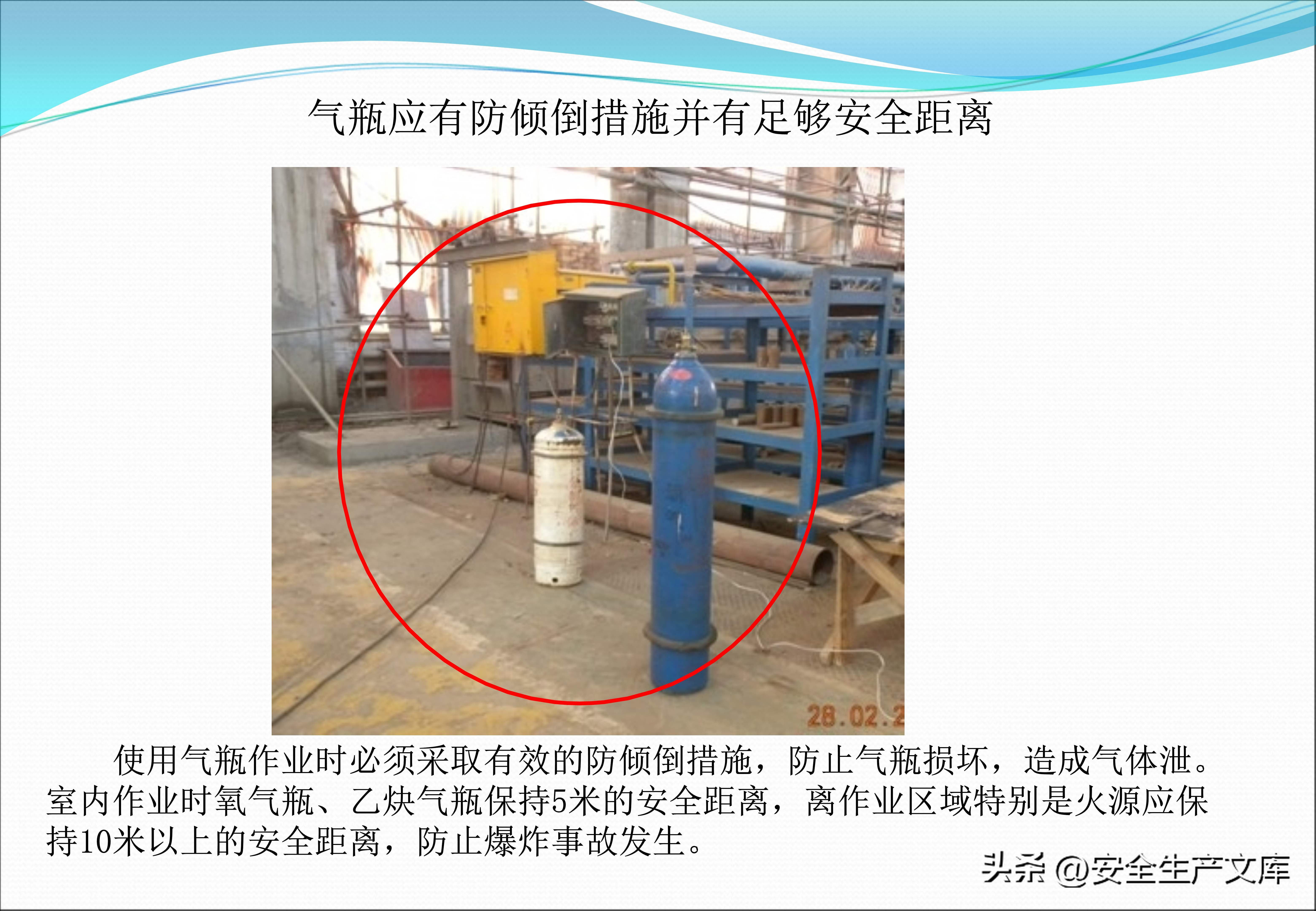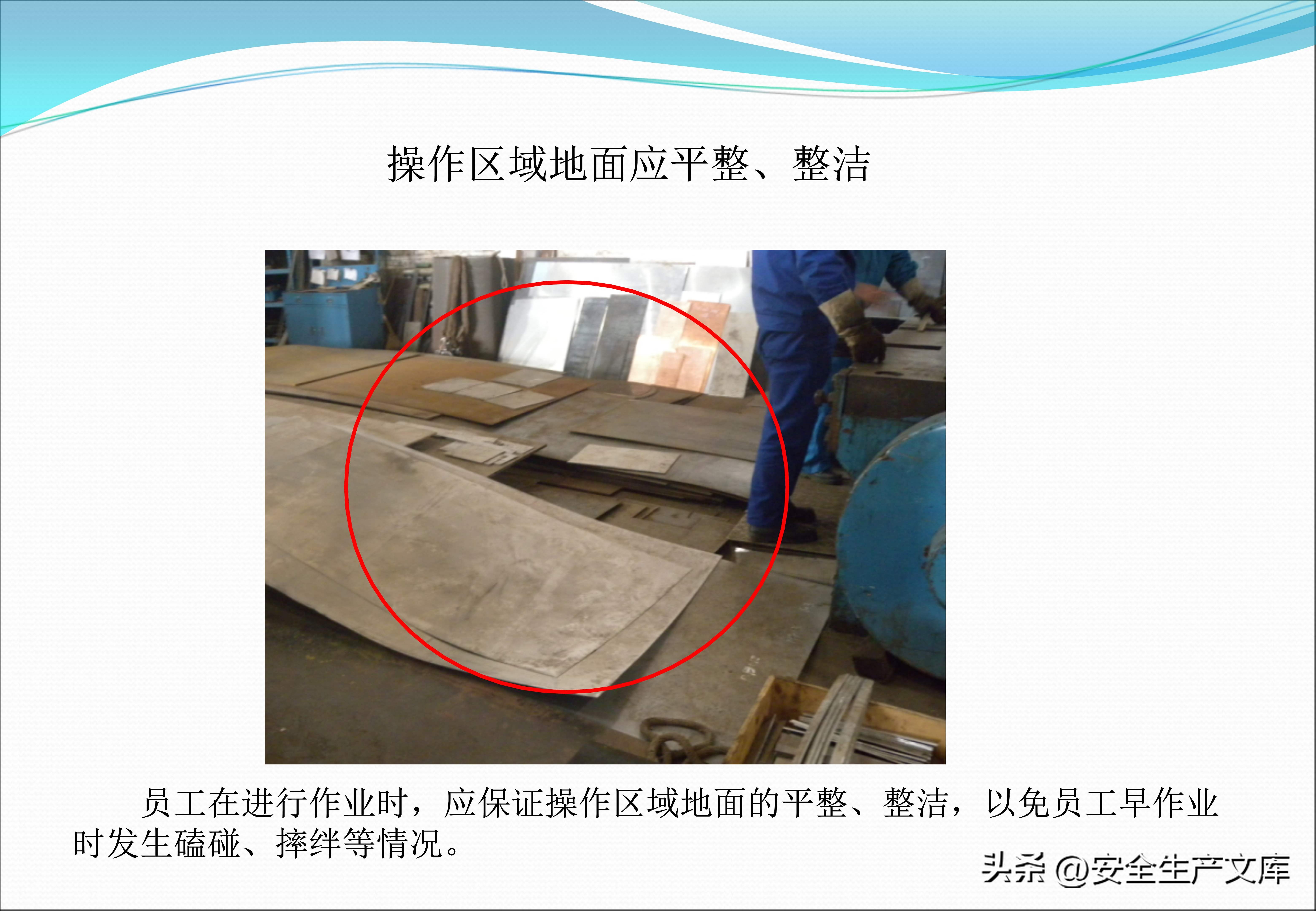 同样不能忽视现场定置管理,在工件摆放超高、失稳的图例里,堆叠的钢板忽然倒塌,将旁边的工人压住了,气瓶没有防倾倒措施,随意靠在墙边,一旦倒下,就会撞断阀门,安全通道被货物堵塞,在图例中发生火灾时工人没法逃生,这些画面都在提示,现场混乱乃是事故的温床,唯有规范管理才可杜绝隐患。