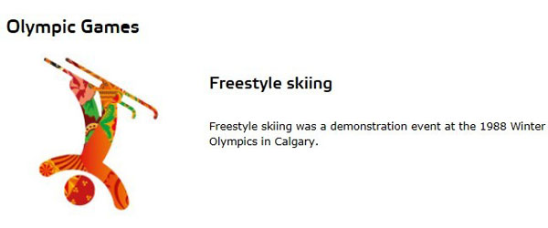 自由式滑雪有着男女空中技巧、雪上技巧、U型池、雪坡赛还有趣味追逐赛这10个小项,运动员把滑雪板以及滑雪杖当作工具,在专门的场地上去完成一系列规定动作以及自选动作,此项目像花样滑冰那样,依据表演的艺术效果以及竞技水平来打分。