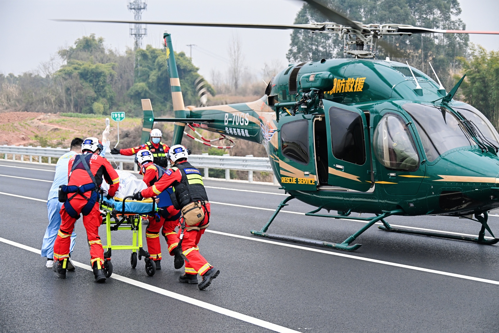本次演练之中,最大的亮点所在,毫无疑问是消防救援直升机首次参与到川内多车道高速公路的应急救援行动里。那架直升机源自成都市航空消防救援大队,机要之上配备着呼吸机,还有除颤仪以及各类急救药品,完全能够称得上是一座“空中移动ICU”。