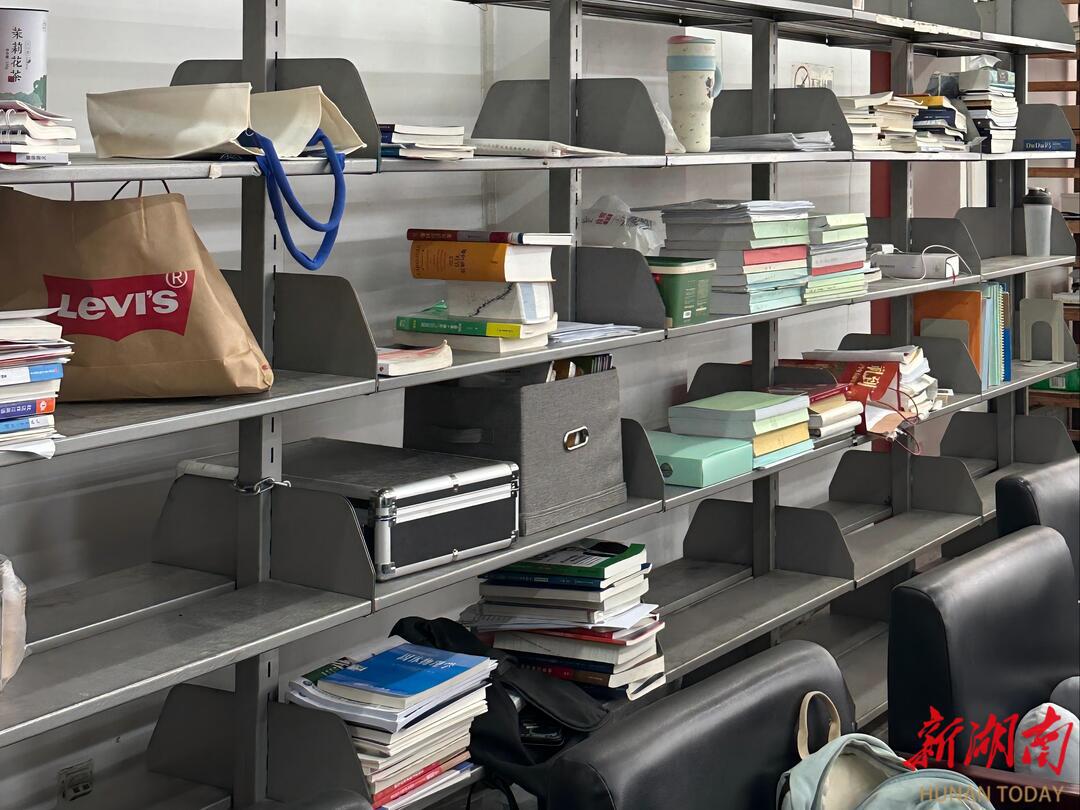 小李是汉语言文学专业的,他坐在靠窗位置,桌上摊开的《古代汉语》书页卷边了,红蓝批注密密麻麻的。他今年的目标是湖南师范大学,虽然家里只有一人,可他仍坚持每天往返10公里来学校。在他看来,有插座并且空调凉快的位置就是“风水宝地”,上午10点后才到,连座位都很难找。