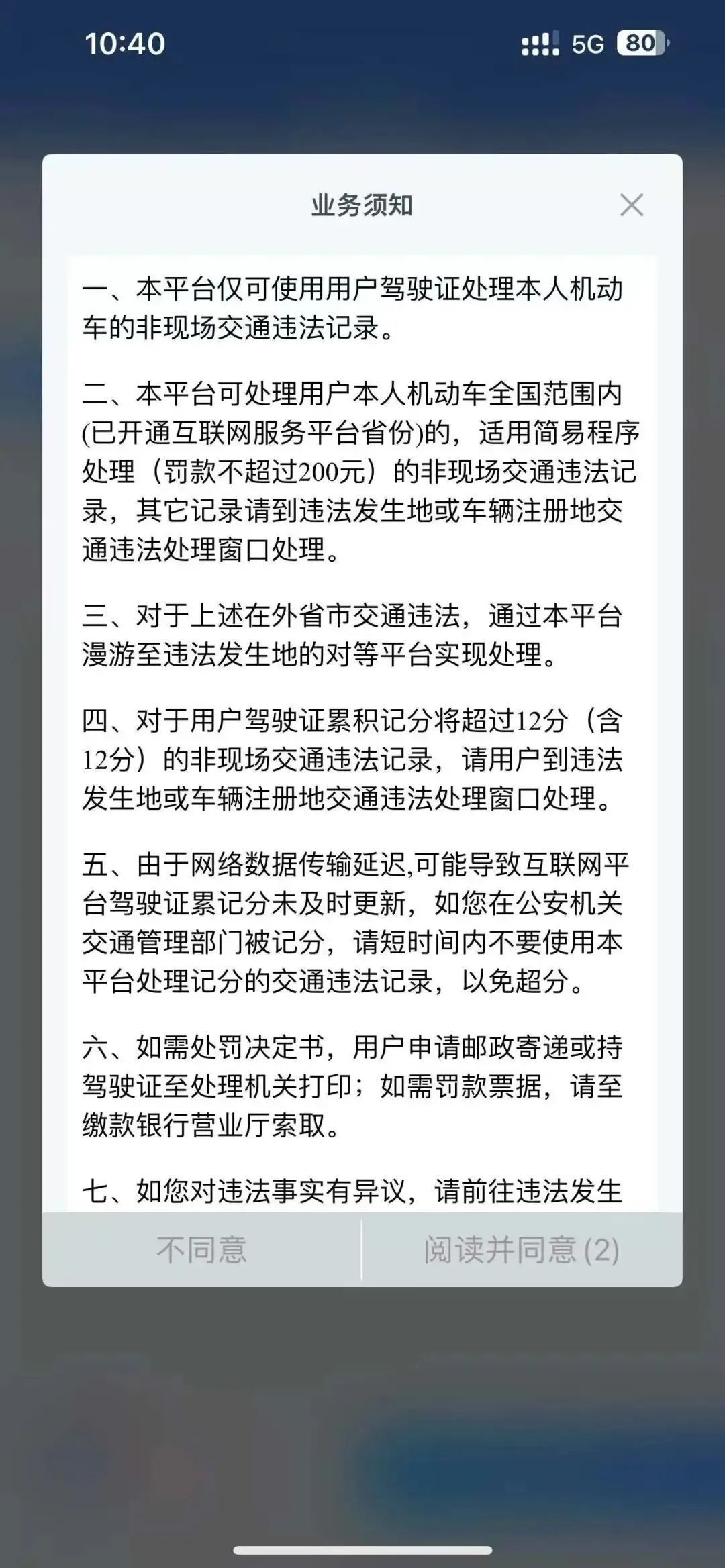 会弹出一份业务须知,接下来系统,仔细阅读之后点击“阅读并同意”。对处罚没有异议,如果你,就能够点击“加入处理清单”,然后确认“处理并缴款”,依照提示来完成罚款支付就可以了。快的话两三分钟就能完成整个过程,不用跑路也不用请假。