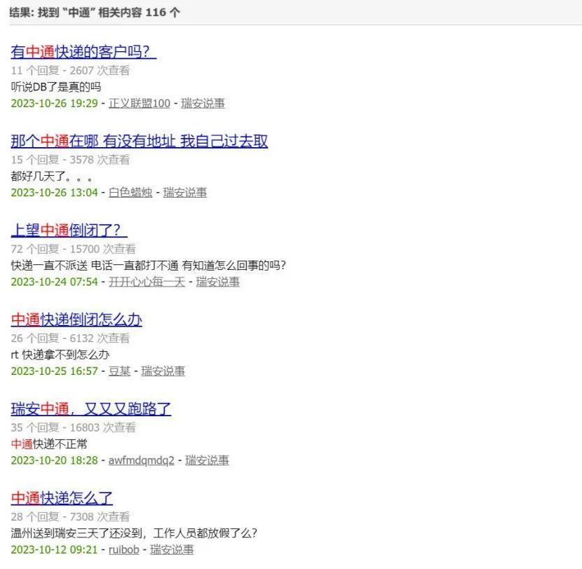 近期,不少瑞安网友察觉到,瑞安中通出现了状况,快递到了却又好似没到,自己的中通包裹明明显示已离开温州发往瑞安,然而过了好些天,却突然跳出“物流异常”的提示,甚至商家还直接说无法发货,一时间,“瑞安中通老板跑路”这样的猜测在本地论坛以及社交群里传得纷纷扬扬。