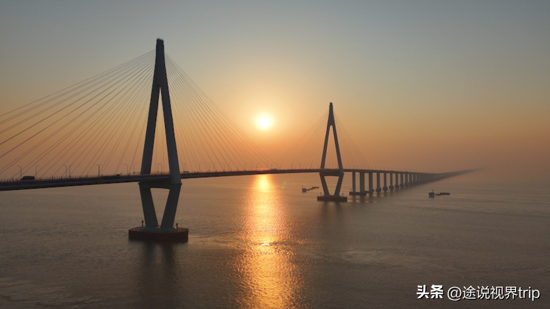 建于2002年6月的东海大桥,属于我国首座具真正意义的跨海大桥,它从上海浦东芦潮港跨海直抵浙江嵊泗小洋山,全长32.5公里。 由于在风高浪急的外海开展施工,建设者掌握并且运用了七大关键技术,通车仅用三年时间。 其159米高的主塔是那时国内最高的海上斜拉桥塔,40米的通航净空足以让万吨级货轮能够自由进出。 句号。