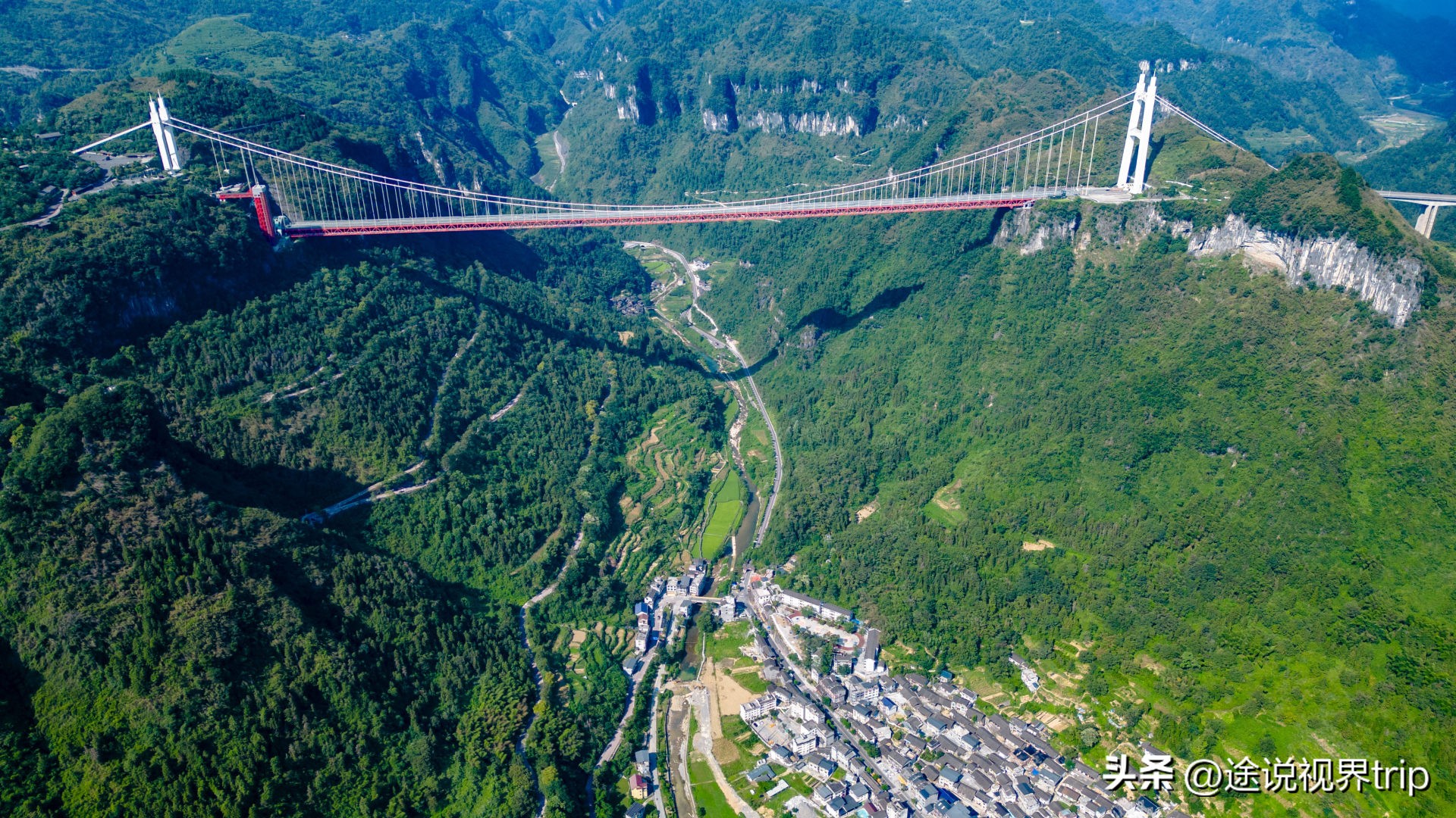 贵州有座北盘江大桥,其桥面距离河底达565米,此高度等同于将近200层楼的高度,它是世界上最高的桥梁。这座桥将云南和贵州两个省份连接起来,在通车以前,从贵州的都格镇前往云南的普立乡,需要翻越三座山头,行走40公里的山路。如今,一个多小时就能够抵达对岸,历经千百年来一直隔江相望的两地终于紧密相连。