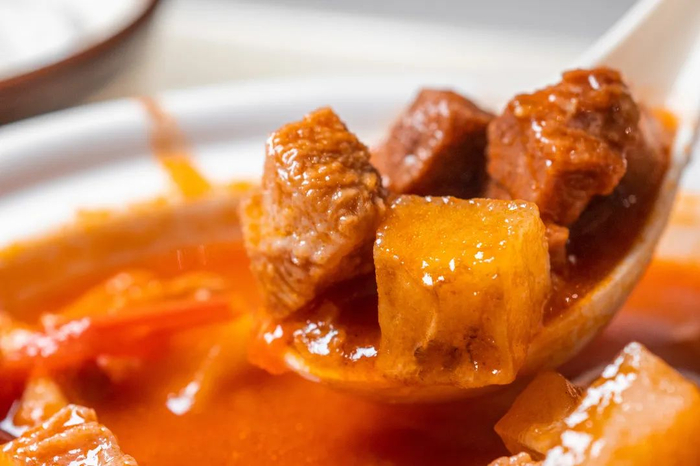 西区那座食堂楼,从外观瞧去显老旧,可其内却匿藏着像齐芳阁这般属于珍宝级别的食堂,有堪称绝美搭配的牛肉汤与葱油饼,牛肉汤所具的汤底味道醇厚,牛肉片呈现出薄片状态且数量可观,现烤的葱油饼酥脆到能掉下渣来,将其浸入汤中会吸满汤汁,进而使得口感具备丰富层次,还有备受欢迎的地锅鸡搭配贴饼子,鸡肉炖制得很是入味,饼子蘸着汤汁去品尝。