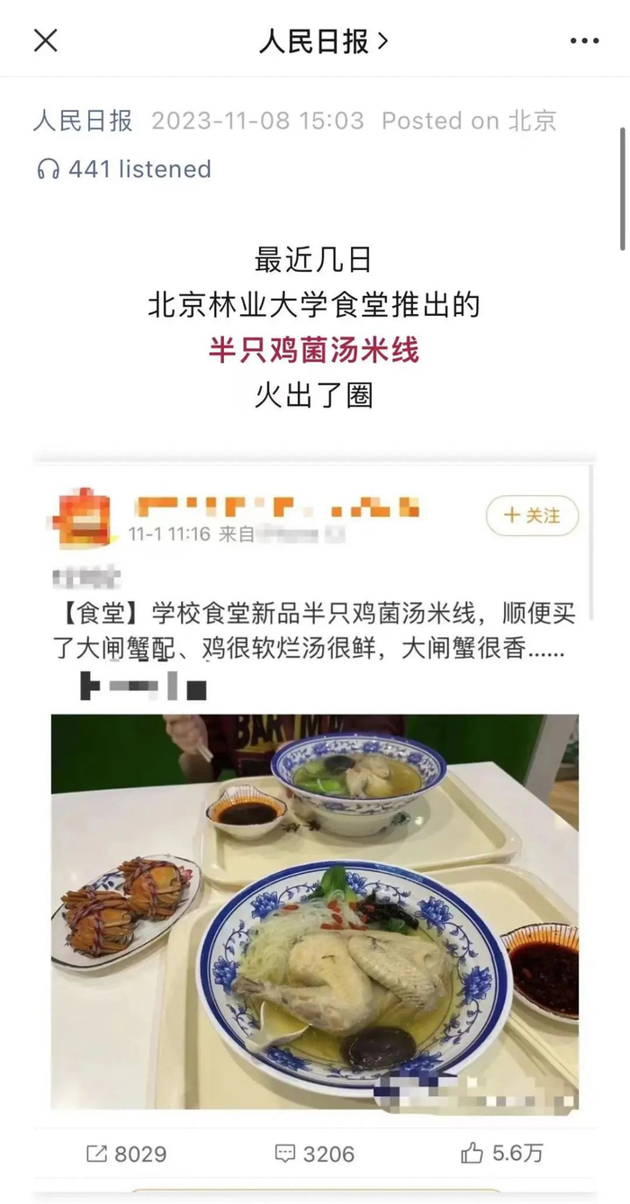 十五元的半只鸡米线登上了人民日报,北林食堂再一次凭借实力证实了“学院路美食扛把子”的地位。这是京城高校圈里的“吃饭大学”,硬是把两座食堂楼弄出了米其林摘星的样子,毕业生的遗憾清单中始终有一项是“没吃遍所有窗口”。