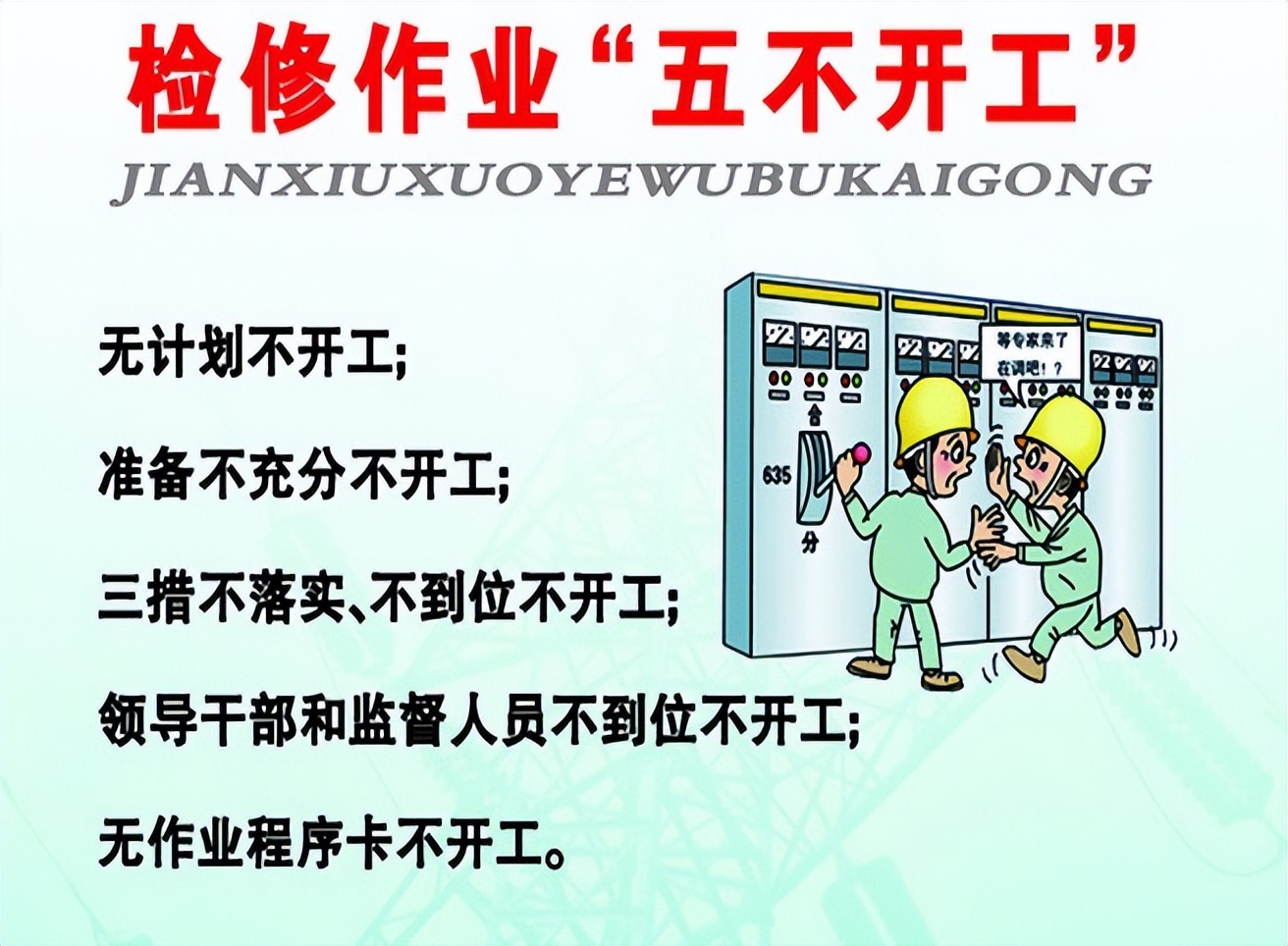 检修作业的“五不开工”可不是嘴上随便说说的,任务要是不清楚,那就不能开工,安全措施要是没做到位,也不能开工,工具如果不合格,同样不能开工,人员要是不明确,还是不能开工,环境要是不安全,依旧不能开工。每一条都是前人用教训换来的。