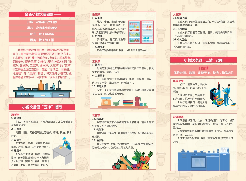 “搬家式”大扫除,每月进行一回,这成了服务区餐饮商户必须要做的事,商户要去彻底排查卫生方面存在的隐患,还要盘点食材库存,并且要在工作群里进行“日周月三清打卡”,以此来保证执行能够到位。市场监管执法人员会不定时到现场去检查食材清洁落实的情况,从而让标准切实落地生根。