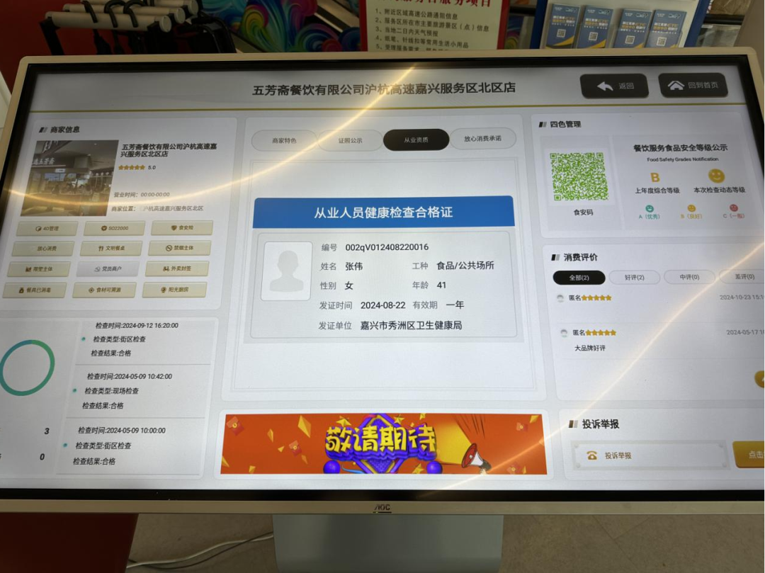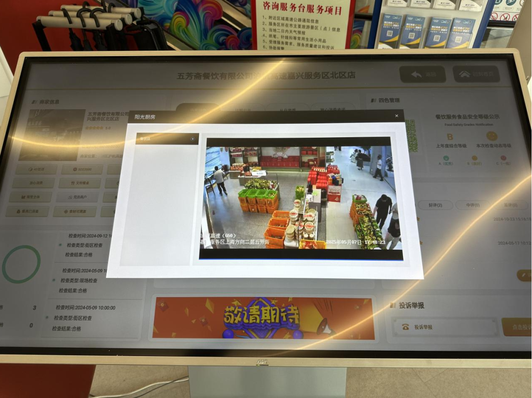 服务区花费大量资金打造了一个名为“街区场景数字化系统”的东西,它会为每一家餐饮店生成专门的二维码。旅客扫描这个二维码就能进入后厨的实时直播画面,进而能查看包括证照信息、食材溯源情况、食安险投保状况、人员健康证明等在内的六大维度的信息,如此一来便真的达成了“云监工”这一情况。