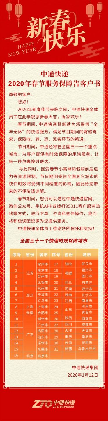2020年1月24日起至1月30日,申通快递明确通告会正常施行取派件服务,这归因于其预先完成了人员安排以及资源调配,将快递安全与质量置于首要位置,且春节期间客服电话95543也维持着畅通状态。