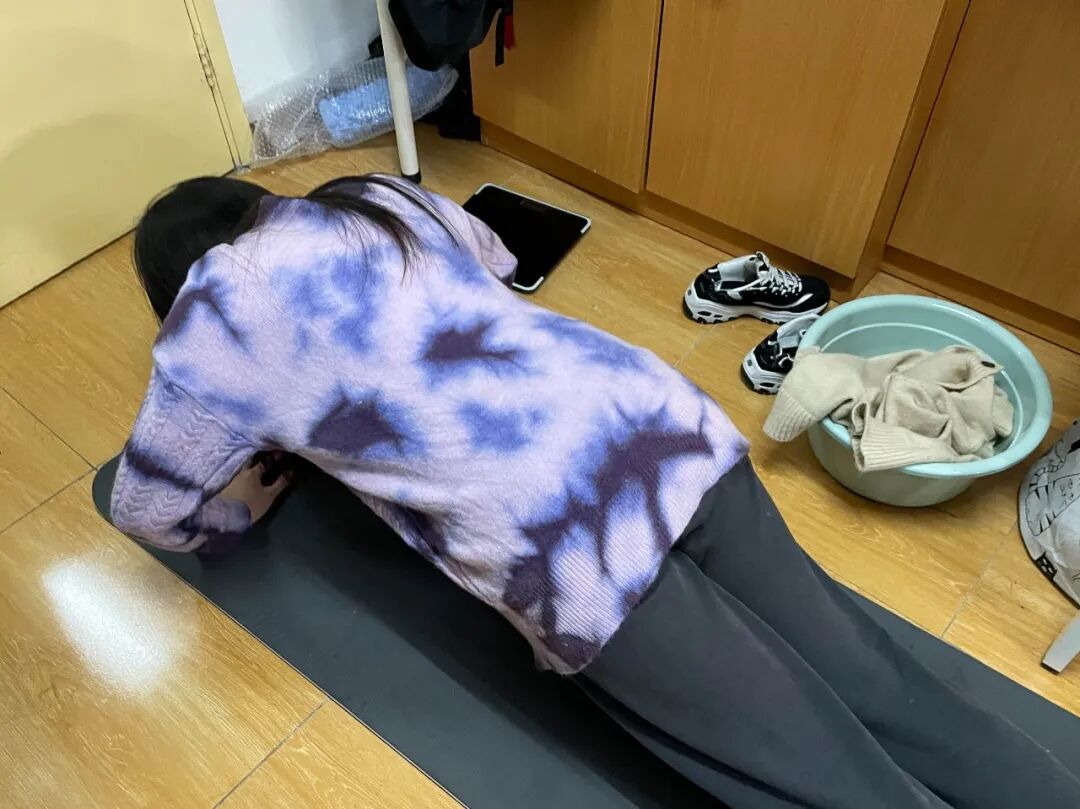 在课程群里,体育老师王敏发了条时长为1分30秒的视频,那视频是利用弹力带去演示坐姿划船动作的。随后的两周时间内,她的邮箱收到了327份寝室运动打卡形成的视频,其中大二男生于上下铺之间完成的引体向上系列,其播放量是最高的。没有专业器械以供运用,学生们把那种灌了满满的水且容量设定为5L的矿泉水瓶用来替代哑铃,同时将瑜伽垫铺在两床之间的过道之上。