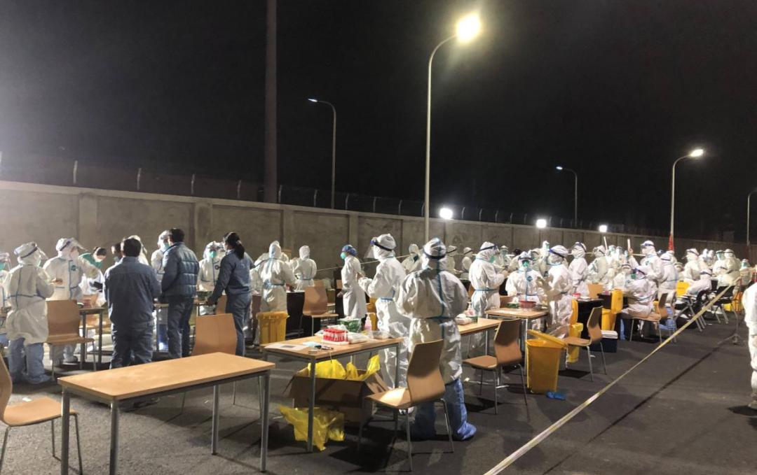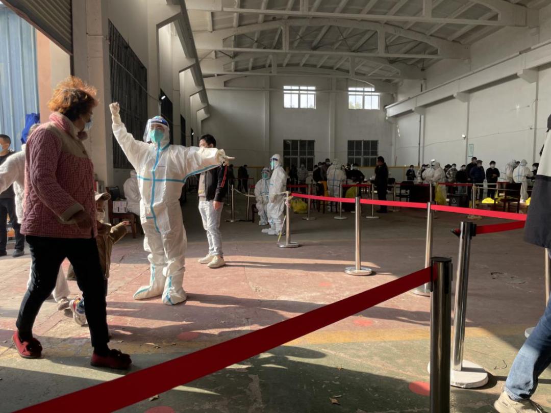 12月7日凌晨5点时,镇海区委统战部内全体党员干部已然站立于寒风之中。彼时天尚未亮呢,他们便匆忙赶赴庄市街道的1688开元广场以及华通电器有限公司厂房处,这两处地方已然转变成为了核酸检测现场。他们需协同医护人员,着手开启24小时不间断的工作。