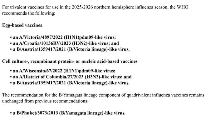 从2023年9月开始,世界卫生组织对疫苗组分建议作出了调整,自2020年3月起,在全球范围内,已经检测不出天然流行的B/Yamagata系病毒,这种病毒株实际上消失了将近5年,继续将它放置在疫苗里,意义并不大。