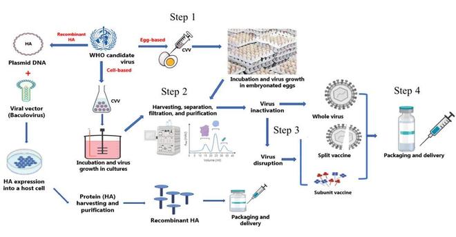 鸡胚培养是传统流感疫苗用于生产之作法,将候选疫苗病毒针对鸡蛋予以注射来实现扩增,接着对收获到的病毒液做灭活、裂解以及纯化等操作,此方法运用时长超过70年具有成熟成熟技术且有着相对大的产量,然而其缺点在于生产周期偏长,当遇到病毒变异加快的情况时有可能赶不上相应节奏。