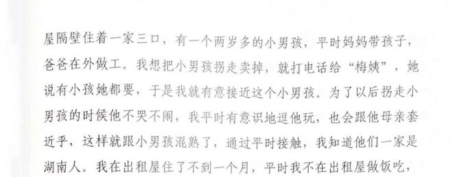 â2017å¹´åï¼æå¤æ¹æ¾å©åçå®¶é¿æ¥æéæå¬ï¼æä»¬æç¥éæ½å¦å¯è½æ¯äººè´©åï¼æåæ è¿äºå®¶é¿çééï¼ä½ç¡®å®æ²¡åè§è¿æ½å¦ï¼ä¹æ²¡å¬è¿å¥¹å¾è°å®¶åè¿å©åãâä¸ä½ç·æ§ææ°ç§°ã