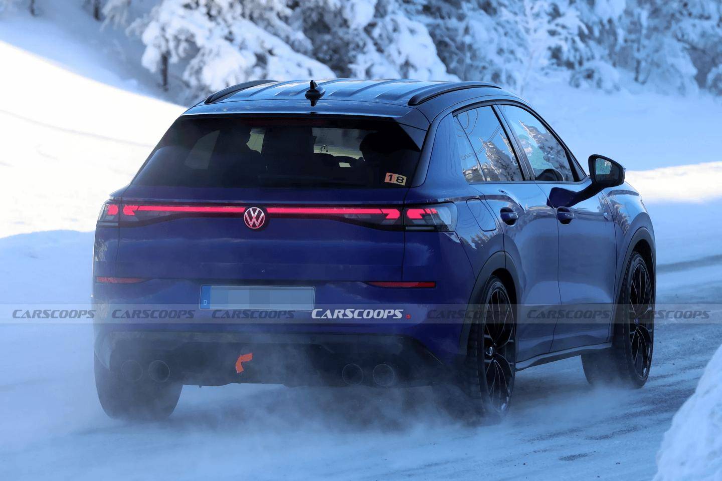 从外媒Carscoops最新公布的路试谍照来看,T-Roc R采用了R系列标志性的Lapiz Blue蓝色涂装,搭配黑色多辐20英寸轮圈和蓝色制动卡钳,视觉效果极具冲击力。与早期原型车相比,新车在刹车系统上进行了升级,配备了实心刹车盘,而打孔刹车盘则可能作为选装项目提供,以满足不同消费者的需求。