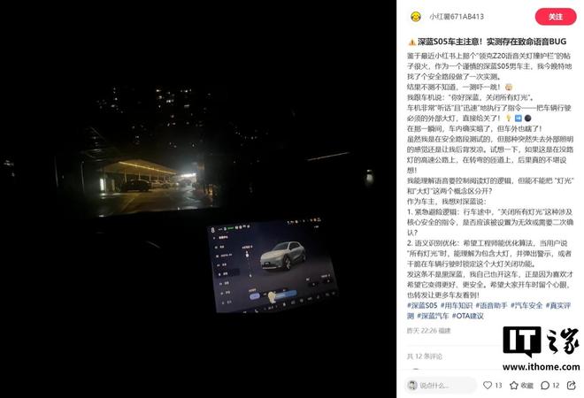 有深蓝车主质疑:“从紧急避险的逻辑出发,‘关闭所有灯光’这类涉及核心安全的指令,是否应直接设为无效,或至少需要二次确认?”
