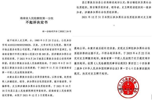 2025å¹´5æ23æ¥ï¼æµ·åçäººæ°æ£å¯é¢è®¤ä¸ºå²çè¾ç¯åå é»ç¤¾ä¼æ§è´¨ç»ç»ç½ªè¯æ®ä¸è¶³ï¼ä¸ç¬¦åèµ·è¯æ¡ä»¶ï¼ä¸è¾¾ãä¸èµ·è¯å³å®ä¹¦ãã