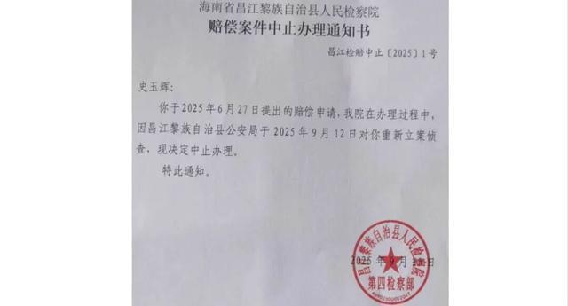 â2025å¹´9æ23æ¥ï¼ææ±å¿æ£å¯é¢åååºäºä¸ä»½ãèµå¿æ¡ä»¶ä¸æ¢åçéç¥ä¹¦ãï¼âå²çè¾è¯´ï¼è¿ä»½éç¥ä¹¦è¯´å¥¹æåºçèµå¿ç³è¯·å¨åçè¿ç¨ä¸ï¼å ææ±å¿å ¬å®å±äº2025å¹´9æ12æ¥å¯¹å¥¹éæ°ç«æ¡ä¾¦æ¥ï¼ç°å³å®ä¸æ¢åçã