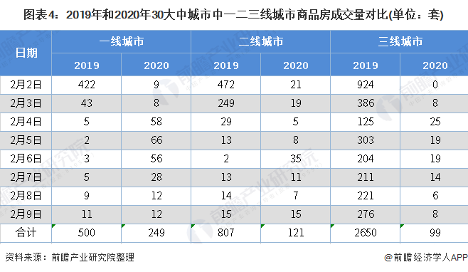 在2020年2月初的时候,在全国30个主要城市当中,商品房的成交量仅仅只有469套而已,在同去年同一时期相比较的情况下,下降的幅度超过了88% ,这样的下滑程度在过去是很少见到的,它直接把疫情对于人们看房以及购房活动所产生的限制给反映了出来。