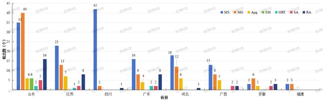 种鸡群里,4/91分支被检出时较为集中,在安徽的一个地方,就检出了14个。多基因型毒株在同一个鸡群共同流行的状况变得越来越普遍,这表明单一血清型疫苗难以给予全面的保护。养殖场务必要依据本场的监测结果,挑选包含对应流行株的多价灭活苗。