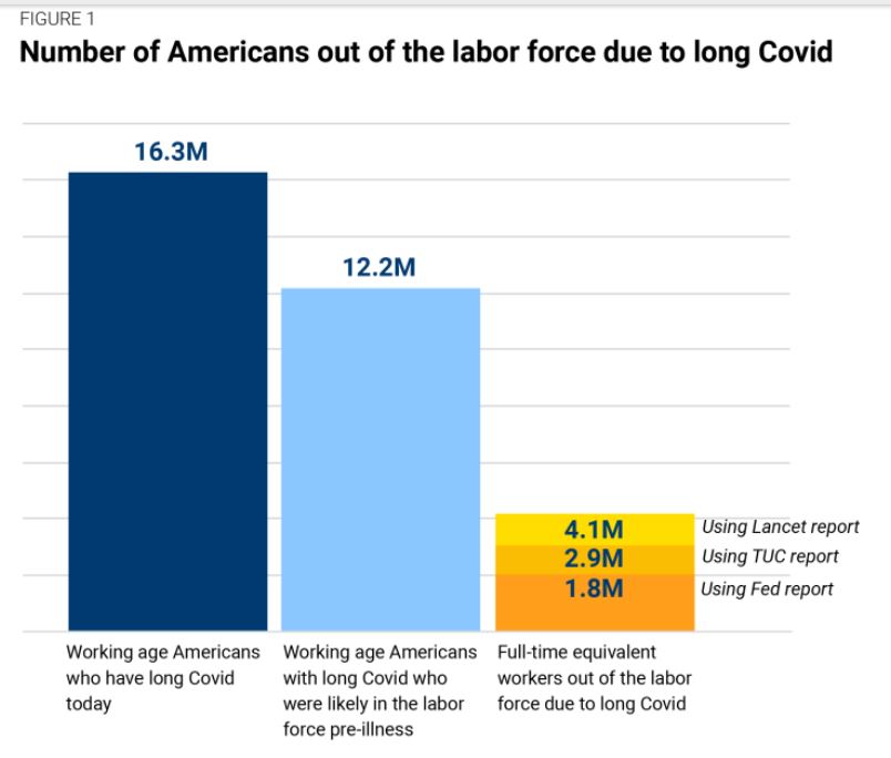 布鲁金斯学会所给出的报告呈现出一个具体精确的数字:有着1600万处于劳动年龄阶段的美国人存在新冠长期症状,其中200到400万全职员工由于此原因而失业。按照美国平均周薪是1106美元来计算,300万人失业一年就会少挣1680亿美元,这其中还并不计算接下来看病、护理以及康复所需支出的费用。记忆退化、呼吸出现障碍、时刻持续疲惫,这些并非是感冒痊愈之后就没事的情况。劳动力市场当中减少了1.8%的人,长期层面来看影响可不单单只是工资方面。