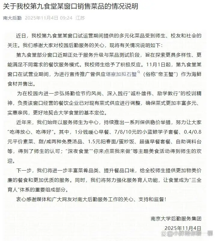 常年供应龙虾的哈佛食堂,堪比国宴的剑桥晚宴,南大的这波操作使得中国高校跟上了国际的步伐。既能够守住教育公平的底线,又能够给予学生品质方面的选择,这样的包容性才是真正的校园温度。