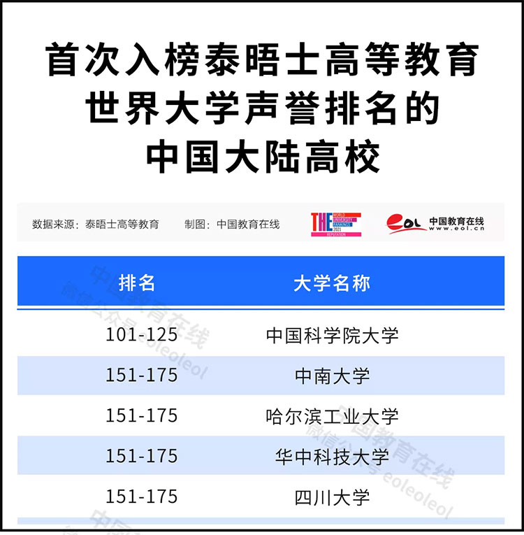 五所大陆高校首次上榜