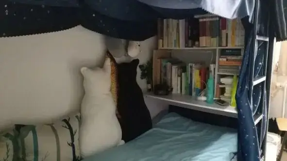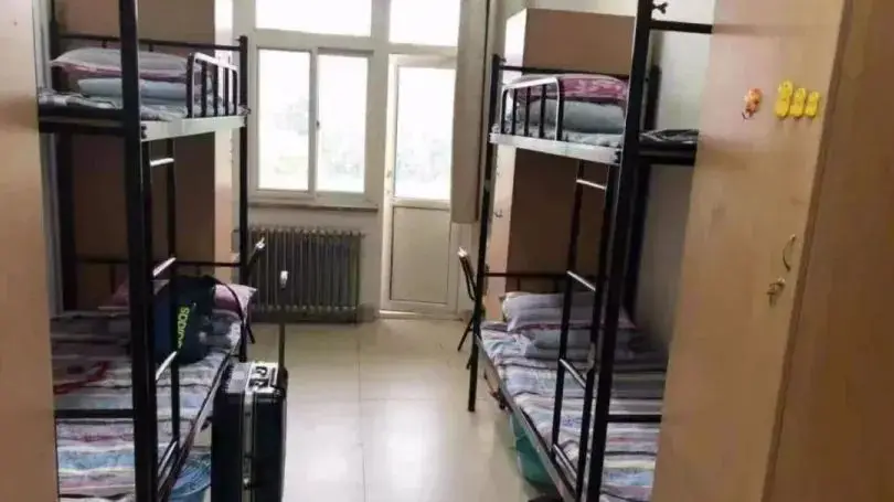 专人每天打扫宿舍楼道,保持着老建筑的整洁,四人间配置上下铺,每人配有书桌、书架和衣柜,初看朴素,收拾后很有生活气息。