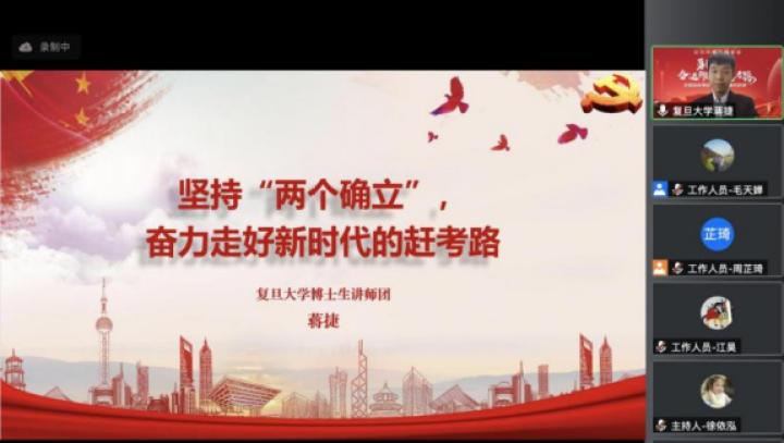 复旦大学博士生讲师团之中的蒋捷同学于宣讲里着重表明,要踏上新的赶考路途,绝不能够缺失领路之人以及探路之人。他予以提出,“两个确立”保障了党和国家前行方向的一致性,这乃是青年奋斗的最为充足的底气。