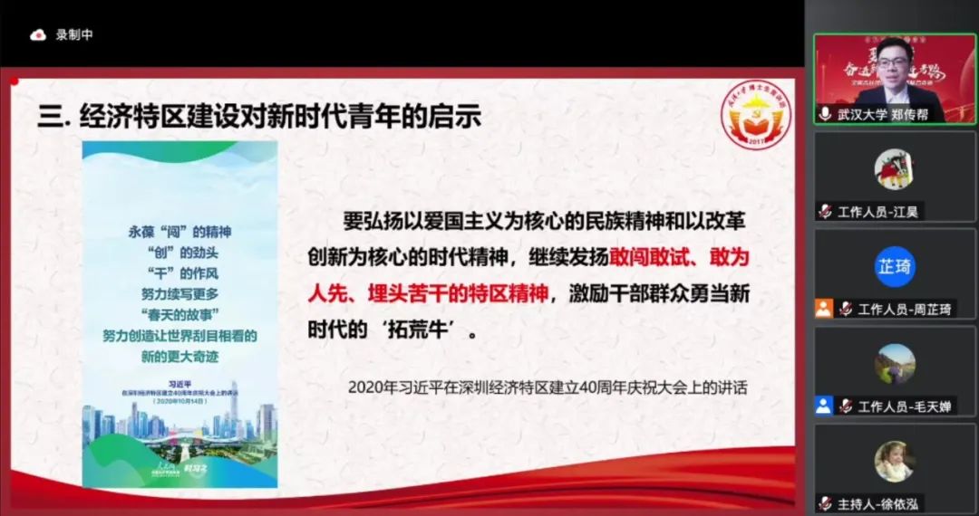 讲席之师,源自中国人民大学、武汉大学等等一众高校的,以“五位一体”当作切入点,分享了新时代之历史性成就。于宣讲里,武汉大学的郑传帮同学向青年发出了号召,要勇敢担当新时代的“拓荒牛”。