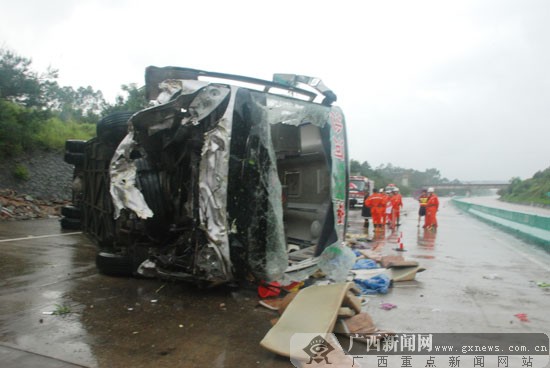 地处桂海高速公路南宁至北海方向1117公里位置,在6月28日上午10时20分的这个刹那之间,有一辆车牌显示为“桂K96888”的城际快班,它突然间失去了原本应有的控制状态。此辆客车乃是从南宁江南客运站开始启程出发,目的地是前往博白沙河镇的那般客车,在其行驶的这个过程当中发生了严重的撞击情况。在事故发生的当场就导致了1人失去了性命去世了,还造成有28人受到了不同程度的伤害,其中有2人是受到了较为严重的重伤情况,2人是受到较轻的轻伤状况,另外24人是受到了轻微程度轻微伤。现场有着大量碎片四处散落一地,那番惨烈的景象使得过往的司机内心感到十分心惊。