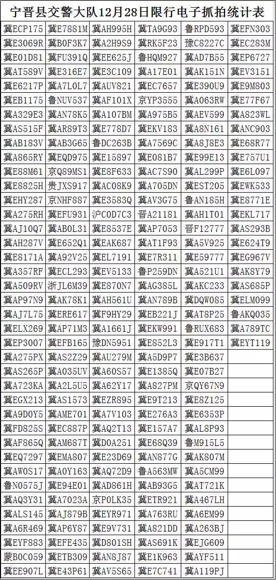 12月28日清晨7点整,宁晋县城区限行区域当中,电子警察准时开启抓拍系统。于凤凰路跟天宝街交叉口,一辆尾号为单号的白色大众轿车被高清摄像头清楚记录,成为首个违反限行规定的车辆。截止到下午5点,总共86辆单号机动车因违规上路被系统抓拍,12辆车被路面执勤交警当场查处。
