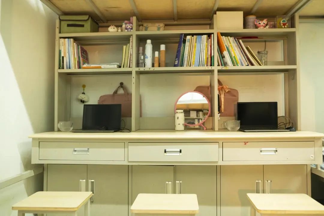 毕竟属于电影相关院校,宿舍设计或许也将学生存放器材的需求纳入了考量范围。四人间的空间足够宽敞,不会让人产生拥挤之感,整体的住宿体验理应不错。
