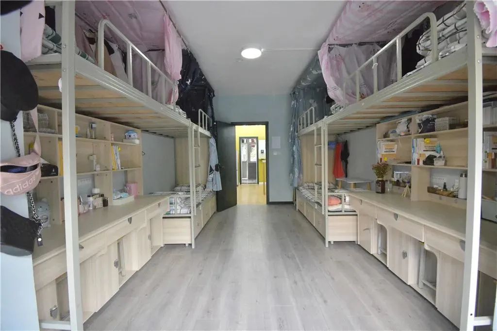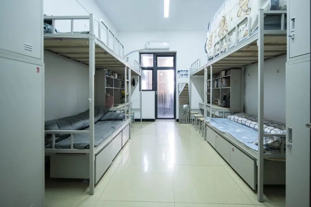 具备四人间与六人间这两种可供挑选的类型,均为上床下桌的布局样式。宿舍里面配备有空调以及热水装置,WiFi信号处于稳定状态,并且每层楼都设置有供学生进行自习的公共学习区域。