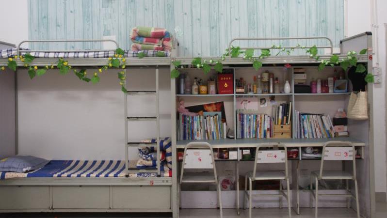 经开区校区为6人间,是上床下桌的构造,每个人都有独立的桌椅,洗澡间与厕所相互分开,其环境是最好的。三个校区之间的差距着实很大,新生最好预先了解自己会被分配到哪一个校区,之后再去做心理准备。