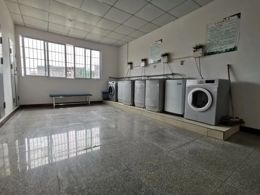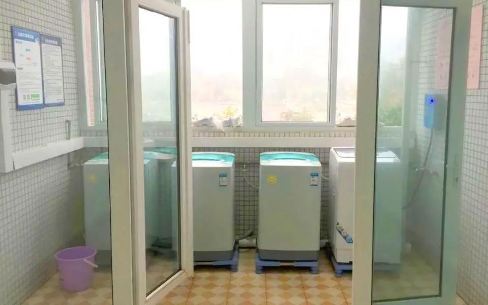 洗衣区设有洗衣机,还有洗鞋机以及微波炉,学生洗衣服时很便利,热饭时也很便利了。如此这般的配置致使学生基本上都无需走出宿舍区,便能够解决平日里的所需,确实是省心的一种举措。