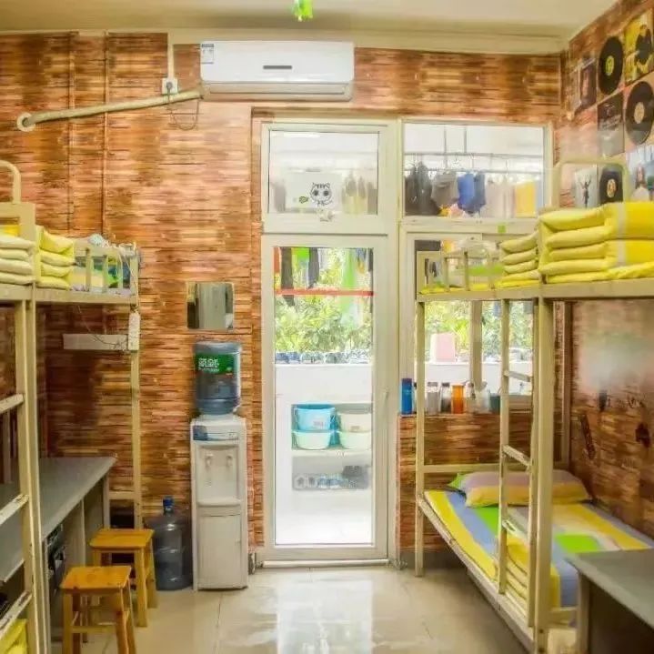 设有六人间宿舍,带有独立卫生间,每个房间均安装了空调,楼下配备自动贩卖机,购买饮料零食无需走远路。