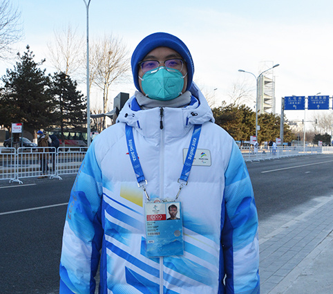 张瑞是中国人民大学的硕士生,他在主媒体中心访问卡办公室担当志愿者助理,其职责是给有特定需求的访客发放访客卡,他觉得新时代中国青年大学生有责任也有义务于冬奥场馆奉献自身,服务技能以及对冬奥的了解都大幅加深了。