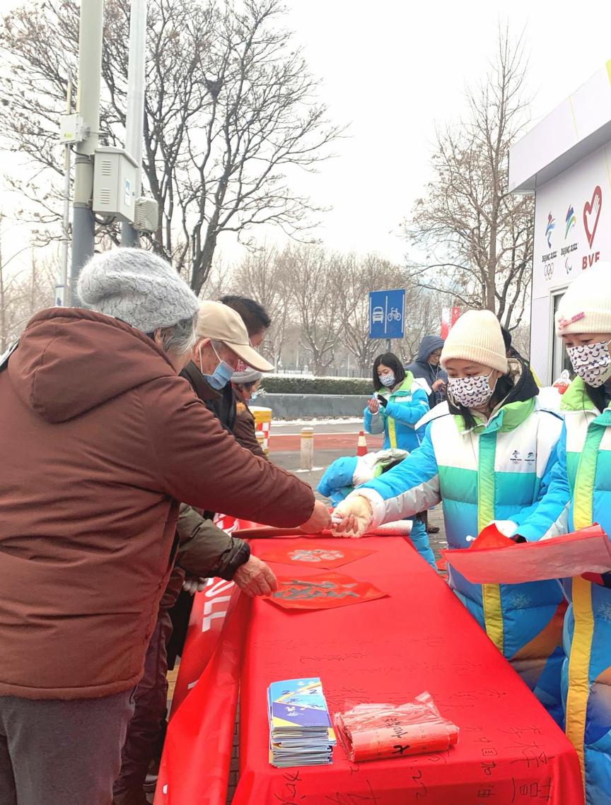好多位年龄超过七十岁的书写艺术家,在那天来到了现场,天还没亮的时候就抵达了,手被冻得僵硬都还在进行挥毫泼墨的创作。在交谈过程中她察觉到,其中有好几位实际上是2008年奥运会的城市志愿者。十四年过去了,他们的头发变白了,然而那份为家乡重要活动贡献力量的心意,丝毫没有改变。