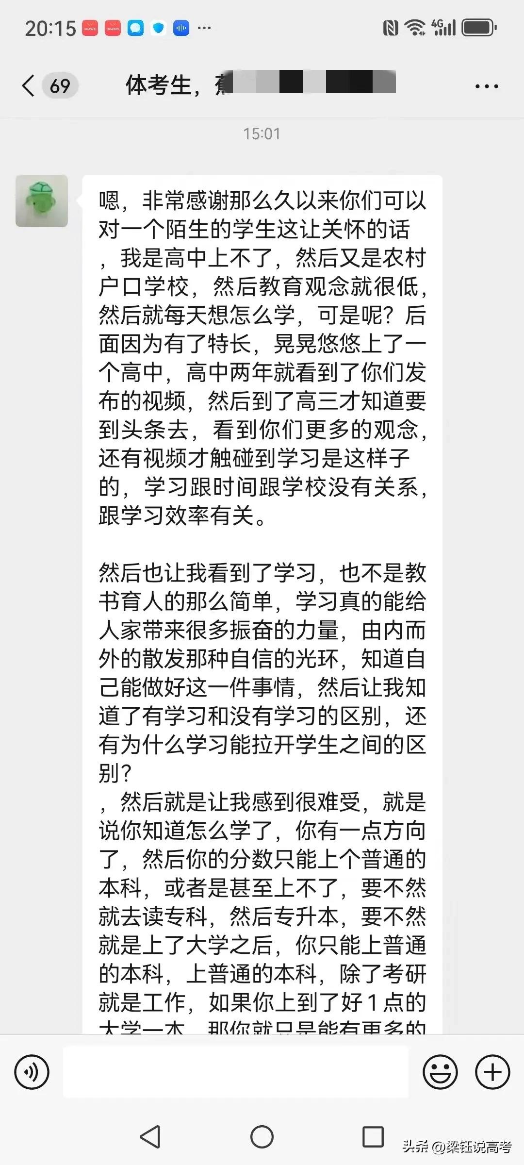 这孩子清晰表明,不论今年考试状况如何,他皆打算再来一年。他坚信运用我所教授的方法,必定能够考入优质学校。他讲当下的教育存在问题,学生的吸收情况也存在问题,他想要给自己一回机会,凭借正确的理念再度投身于高考。