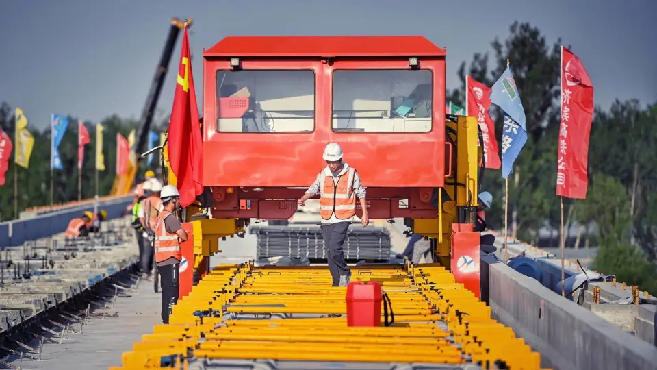 铺轨现场运用WZ500无砟铺轨机组,单班日铺轨进度能够达到6公里。全线铺轨的总里程是291.36公里,其中无砟轨道为239.14公里,有砟轨道是52.22公里,要铺设道岔66组。这套智能建造体系给山东高铁建设树立了新的标杆,还为全国高铁无砟轨道施工提供了宝贵的经验。