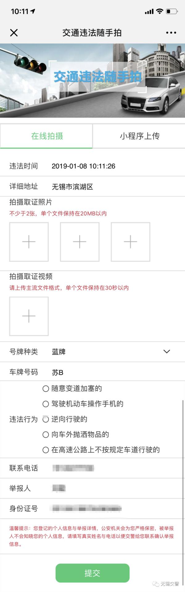 假使你恰好于违法行为出现场所,能够径直运用公众号之中的“违法随手拍”功能于现场进行上传。图片举报之时要提供两张以上能够清晰记录违法情形的照片,务必拍得清车牌号、车辆外观以及周边环境。