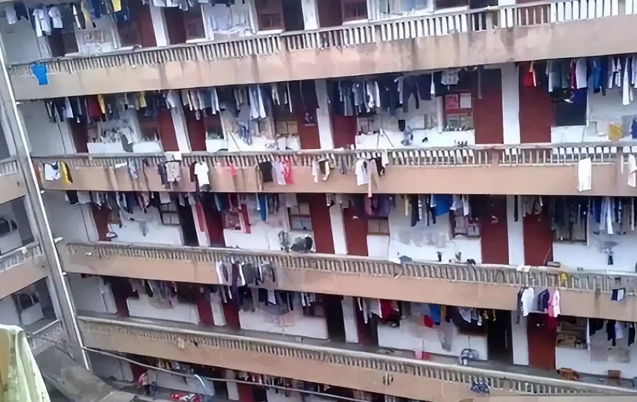 在广东,有一所师范大学存在分校区,该校区的寝室被学生描述成“窒息感扑面而来”。这些寝室是8人间宿舍,大多建造于上世纪90年代,直至现在都没有独立卫生间以及洗浴设施,学生仅能够把衣服晾晒在宿舍外面的公共区域。2025级新生里有个叫小王的,他告诉记者,开学第一天的时候,看到宿舍楼外墙有斑驳脱落的情况,走廊里挂满了湿衣服,差点就以为自己走错地方了。