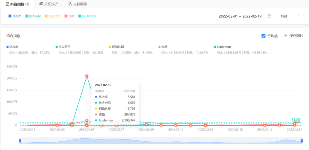 在2月5日,这成为了多个服装品牌的高光时刻,那个属于它们绽放光彩之时刻。加拿大品牌lululemon于抖音的搜索指数急剧飙升至699万,其环比增速是高达3519%那般惊人 ,此外安踏是以128%的增速紧紧跟随于其后。就在这一天 ,差不多所有和冬奥相关的服装品牌都迎来了流量洪峰 ,众多用户是纷纷去搜索同款开幕式服装 ,在社交媒体之上满是对运动员入场服饰的讨论。数据所显示的是 ,北面、优衣库等品牌即便也存在曝光情况 ,然而其声量却并未同步得到放大。